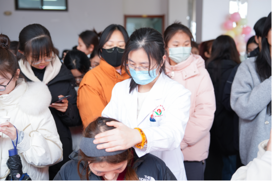 在中医茶饮体验区,精心调配的季节养生茶饮成为全场“人气王”,师生们一边品尝,一边认真聆听药师讲解茶饮配伍原理与适用人群。在中药辨识展区,药师们手持药材标本,带领师生开启“本草探秘之旅”,艾叶、茯苓、黄芪等20余种常见中药实物陈列,并结合“盲盒猜药”“气味连连看”等互动游戏,让师生在轻松愉悦的氛围中学习中药知识。在“女性健康关爱”中医适宜技术专区,提供了中医美容驻颜咨询,从内调外养角度解析肤色暗沉、脱发等问题,专家们现场演示穴位按摩手法,教授如何通过按压三阴交、太冲穴等穴位来缓解疼痛、焦虑。