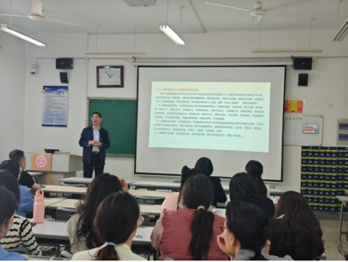 副经理安洪涛以《八项规定何以深刻改变中国》为题。要求教师坚持好、运用好贯穿其中的立场观点方法,将其转化为指导实践、推动工作的强大力量,要严守纪律规矩,保持清正廉洁的政治本色,做到心有所畏、言有所戒、行有所止,营造风清气正的政治生态。