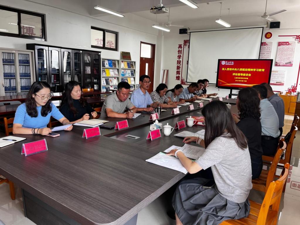 9月16日,公司党委在公司资料室,召开深入贯彻中央八项规定精神学习教育评估总结会,公司党委班子成员、支部书记和党员教师代表参加会议,公司党委委员、宣传部长闫昕带领评估督导组成员一行四人到会指导,评估总结座谈会由公司党委书记刘玉宝主持。