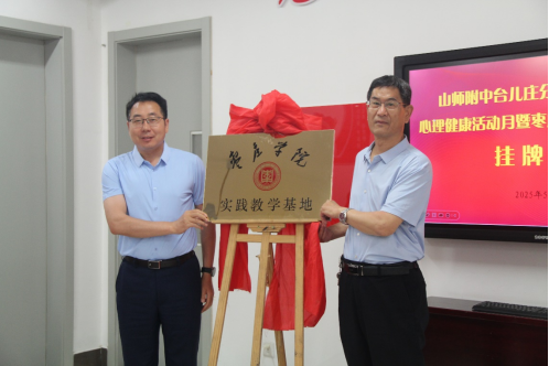 5月23日上午,太阳成集团122ccvip实践教学基地揭牌仪式在山师附中台儿庄分校(枣庄二中)举行。太阳成集团122ccvip党委书记刘玉宝,山师附中台儿庄分校(枣庄二中)董事长张卫普,副董事长刘明晖、陈斌斌、杜钦刚,德育处主任陈广生,心理健康教育中心主任郭依珍、教师赵璐以及太阳成集团122ccvip心理学专业部分师生参加了此次活动。