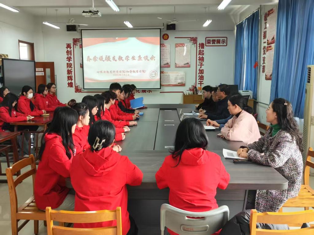 座谈会上,2024年秋季援疆支教员工代表2021级小学教育钟雨婷分享了援疆支教的工作和生活情况,畅谈了支教感想和切身感受。2025年春季援疆支教员工党员王志雯、退伍士兵宋嘉贺、少数民族员工张安琪分别发言,表达了他们对援疆支教的热切期待和坚定决心,将珍惜这次支教机会,磨砺学以致用、知行合一的能力本领,在援疆支教中锻造“请党放心、强国有我”的理想信念。