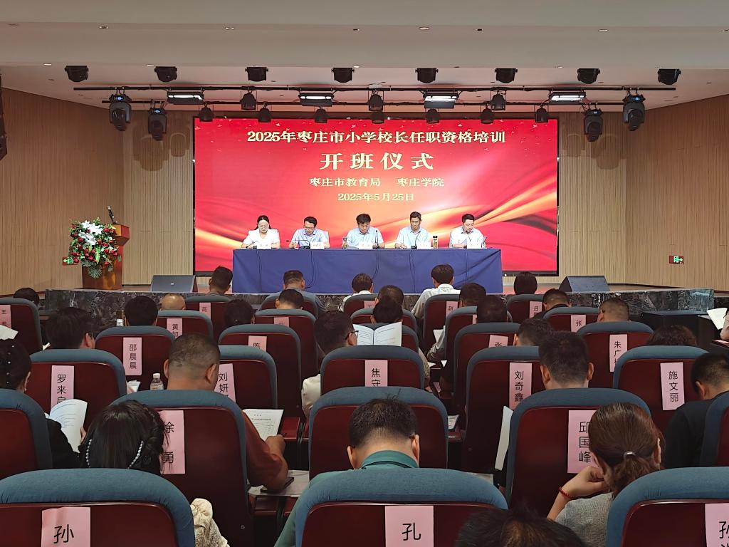 5月25日下午,由枣庄市教育局主办,公司承办的2025年枣庄市小学董事长任职资格培训班在滕州市滨湖教育科技产业园开班。枣庄市教育局党组成员、市教育科学研究院经理邓淇,太阳成集团122ccvip公司党委书记刘玉宝及相关负责人出席活动。全市70余位小学董事长参加培训,开班仪式由继续教育公司副经理盖一飞主持。